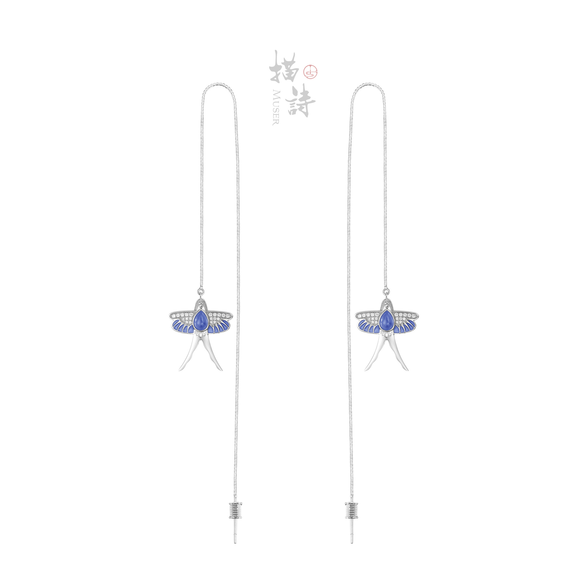 预售-沙燕轻鸢-蓝宝石镂空珐琅耳线