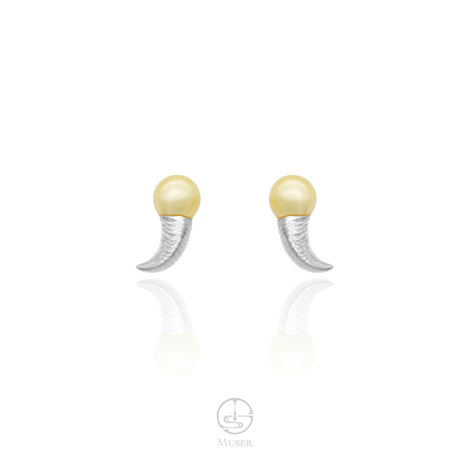 预售-“牛”转乾坤-香槟金珍珠耳钉-18K白